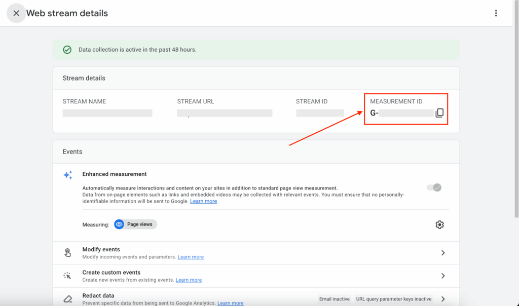 You’ll see a code that starts with “G-” — this is your unique Google Tag.